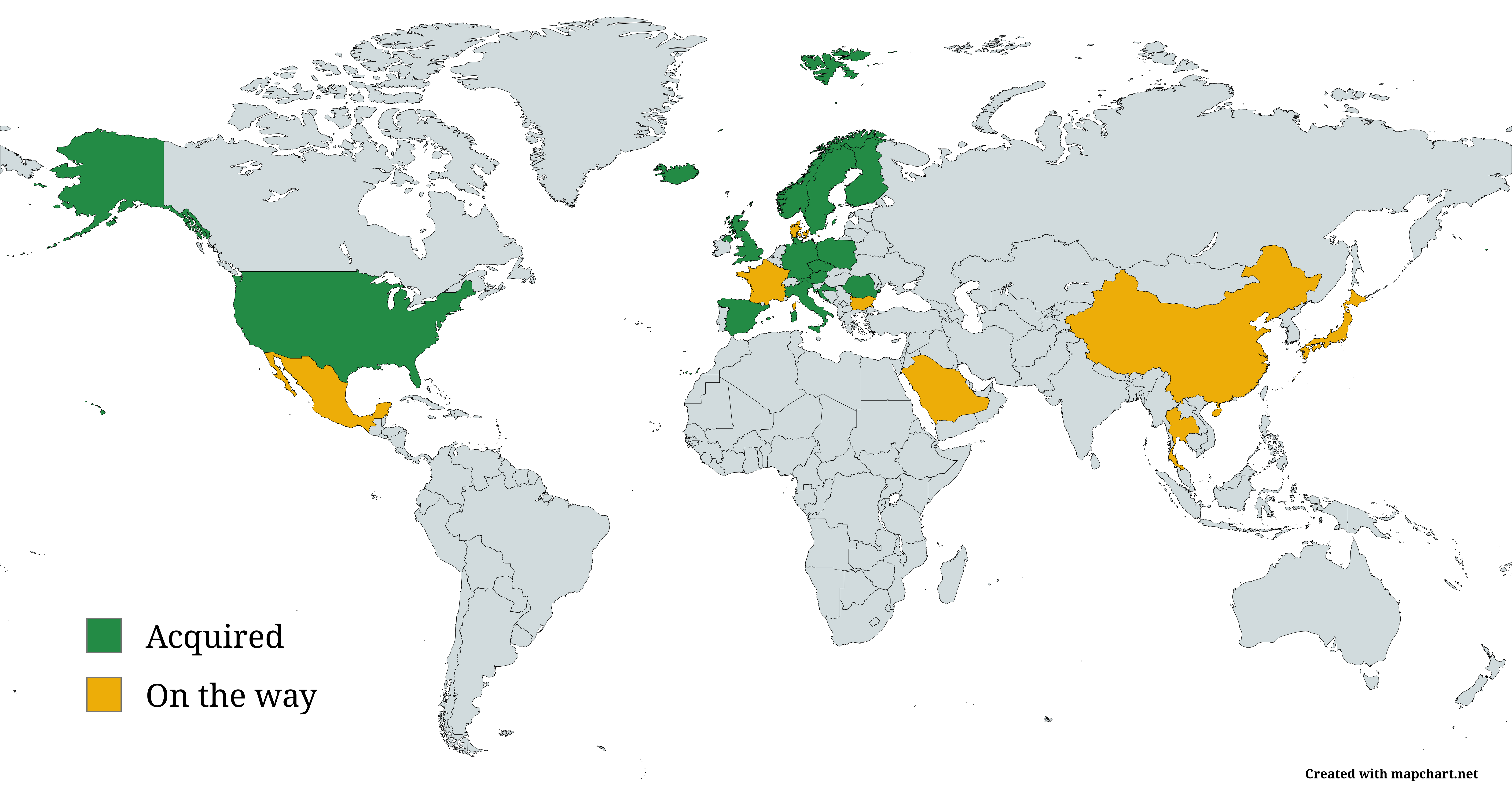The following is a world map, highlighting the countries from which I’ve collected a deck.